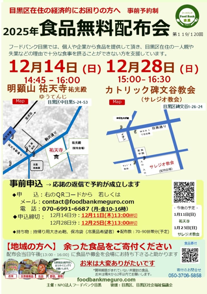 12月14日(日)祐天寺、12月28日(日)サレジオ教会で実施します。