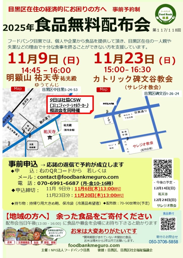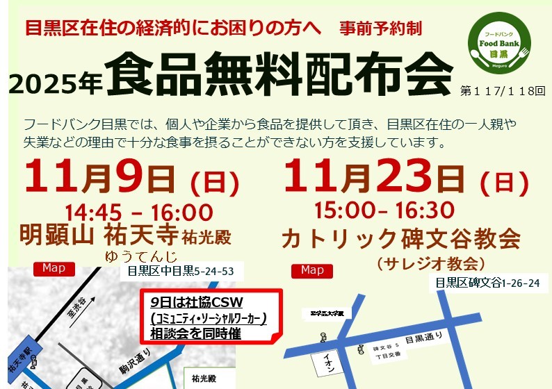 11月9日(日)祐天寺、11月23日(日)サレジオ教会で実施します。