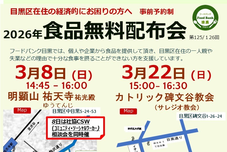 3月8日(日)祐天寺、3月22日(日)サレジオ教会で実施します。